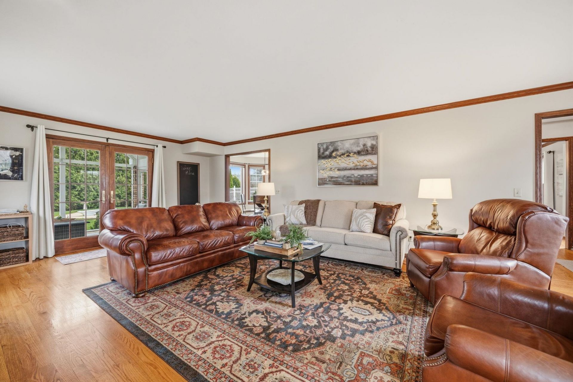 In town on 1.20 acres located at end of cul-de-sac offering privacy and park-like setting. Hardwood floors & ceramic tile flooring throughout. Main level laundry room, gorgeous half bath, formal DR, updated kitchen for entertaining w/large island & dinette area, an abundance of beautiful cabinetry, hard surface counter tops and built-in hutch. Relax in spacious living room w/woodburning FP open to screen porch overlooking private yard & beautiful inground pool. Staircase invites you to bedrooms, 2 bathrooms & an oversized closet for clothes & added storage. Basement is partially finished with exercise room and an abundance of storage or room for future finished living space; plumbed for additional bathroom. Convenient staircase from basement to the 2+ car attached garage. Need more storage, not a problem! Additional 2+ car garage for mowers, toys, extra cars, etc. Adjoining buildable lot for kids to roam, garden or host outdoor events. Perfectly packaged piece of paradise on Park!