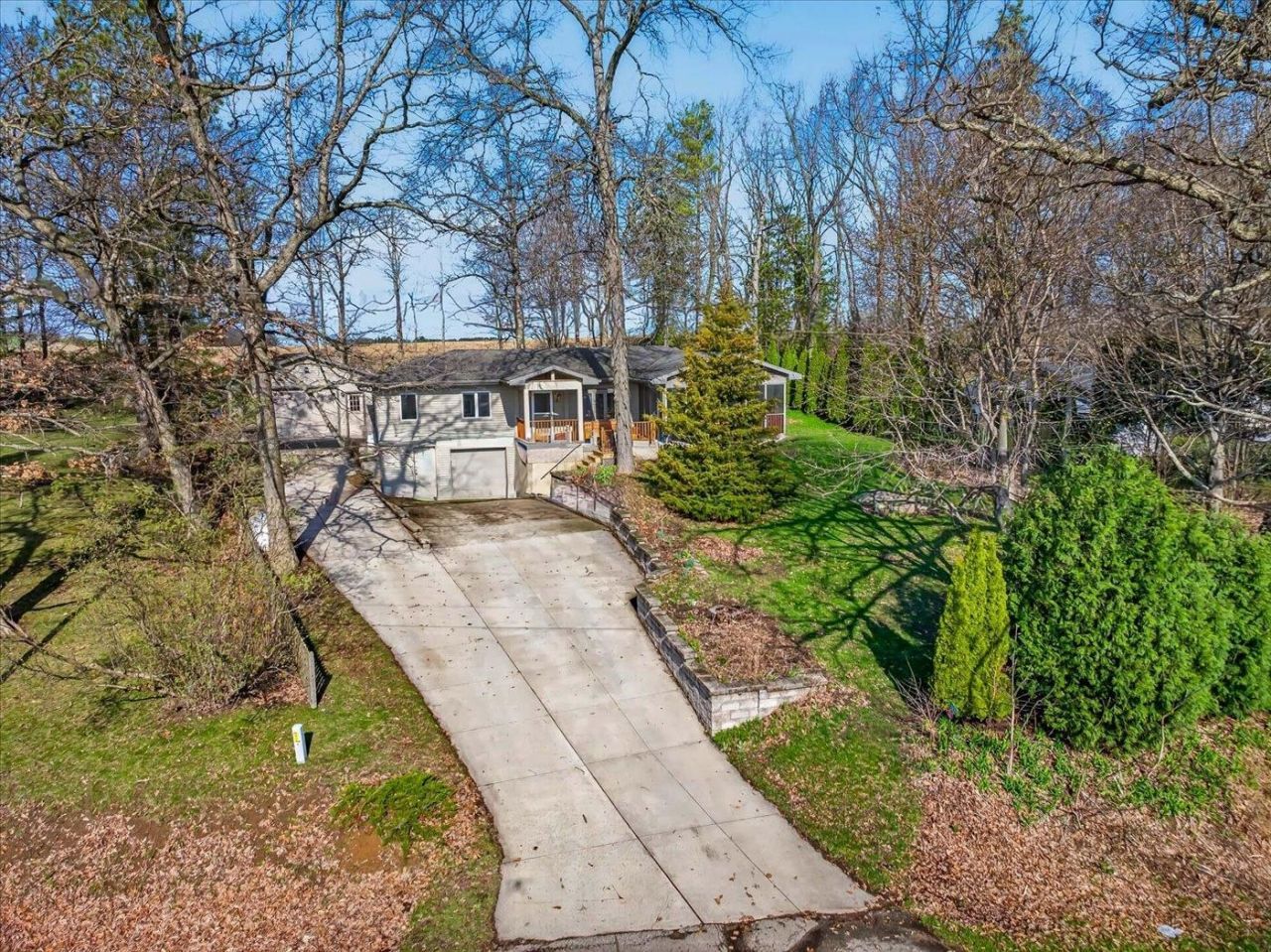 Showings begin 4/18/26. Tucked away on a private, wooded 1/2+ acre lot with no neighbors in back, this beautifully updated home offers comfort, space, & versatility. Just 2 mins from town, in the Waunakee school district, with low Town of Springfield taxes. Enjoy outdoor living on the screen porch, front deck, expansive concrete patio, or hangout by the firepit. Kitchen-SS appliances, concrete & reclaimed wood countertops, stone backsplash, island, upgraded sink + hot water tap, & real hardwood floors. The oversized living room includes a gas fireplace & access to both the backyard patio & front screen porch. Primary Suite-3 closets, backyard access, jetted tub, tile shower, heated floors, & heated towel rack. Lower level offers a large Rec room and a 3rd bathroom (also with a tile shower & heated floor). Attached 1 car garage & additional storage stall, plus a heated detached 2-car garage with 8' tall garage door. Furnace/AC/water heater-2020, well pump/tank-2022, water softener-2019.