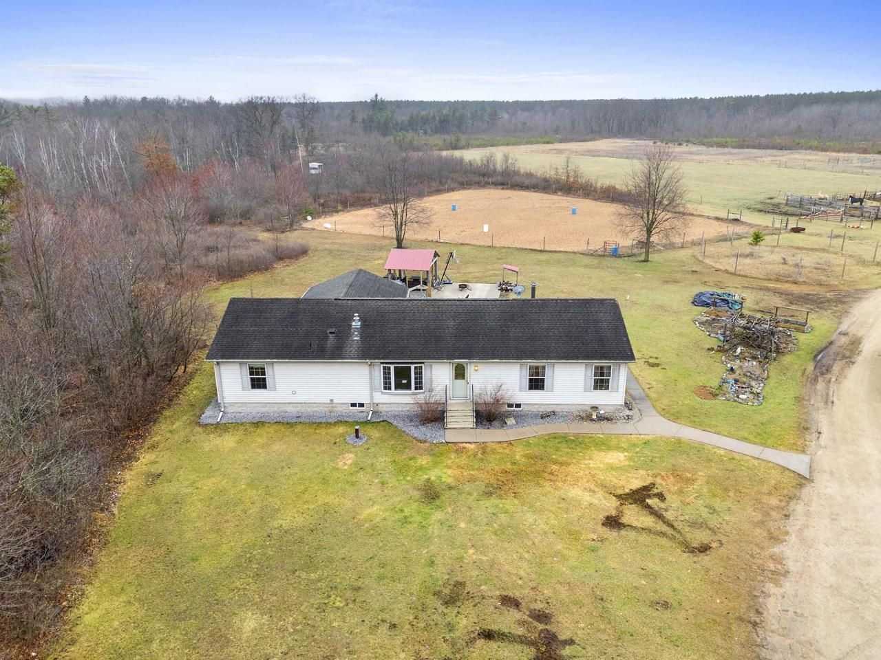 Welcome to a rare opportunity to own a premier horse property nestled in the heart of the countryside at W9041 Airport Rd, Crivitz, WI. This exceptional 43 acre estate offers the perfect blend of functionality, privacy, and natural beauty complete with your own private lake and breathtaking panoramic views. Built for equestrian enthusiasts, this property features a 70x168 riding arena, multiple horse stalls, and a separate 40x100 horse barn. Miles of scenic trails wind throughout the property, offering ample space for riding, training, and allowing horses to roam freely. The well maintained 4-bedroom, 2-bath modular home provides comfortable living with peaceful country views from every angle. Step outside to enjoy a large deck, pool, and hot tub perfect for relaxing mornings. Call Today!